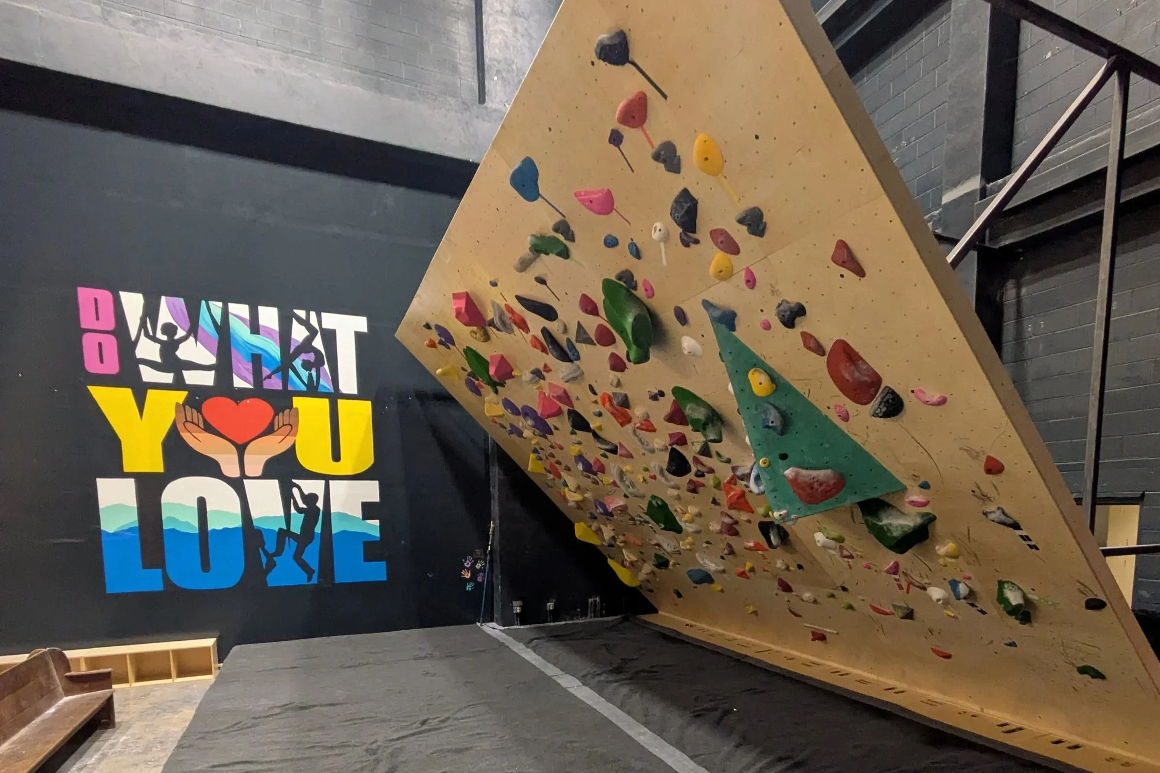 State Climb is a full-service Rock Climbing Gym with a rotation of around 100 boulders and 20 routes available at any given time, plus a Kilter Board and a Fitness + Training Area designed for climbers. Our bouldering terrain is varied, with a wide range of angles and boulders set for all ages (4+) and skill levels, from first-time beginners to advanced climbers. Our auto-belay, top rope, and lead climbing terrain ranges from 25-42 feet tall. Walk in any day of the week and we’ll make sure you have everything you need to have a great session!