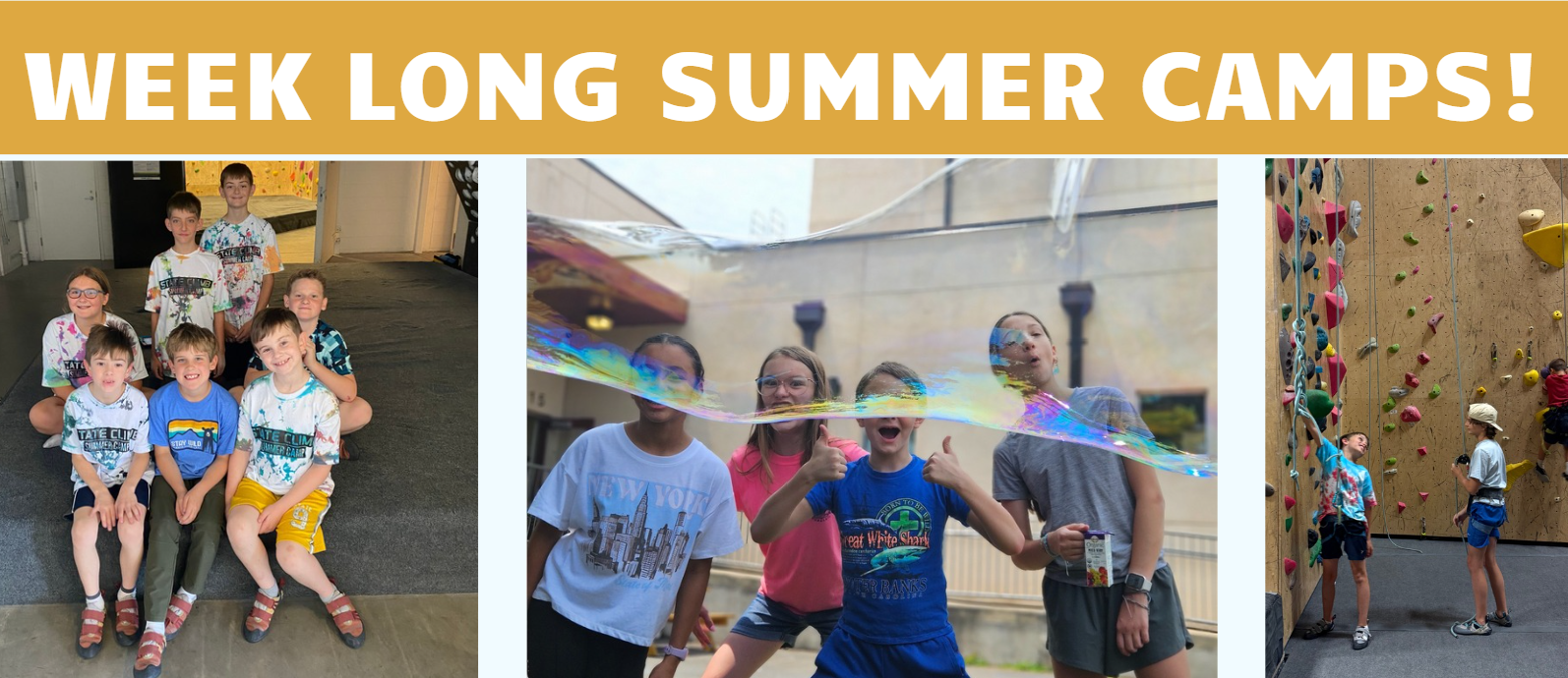 Drop off your campers at State Climb on Monday morning at 8am and pick them up on Friday at 4pm!